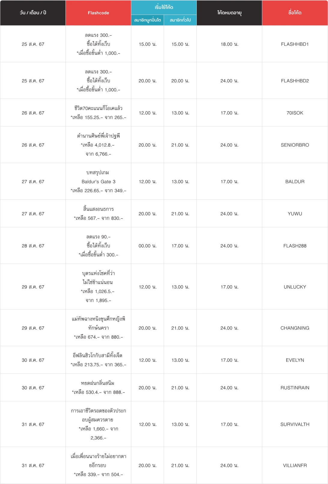 โพยคุ้มจัดหนัก #FLASHCODE มีโค้ดอะไรบ้างนะ?