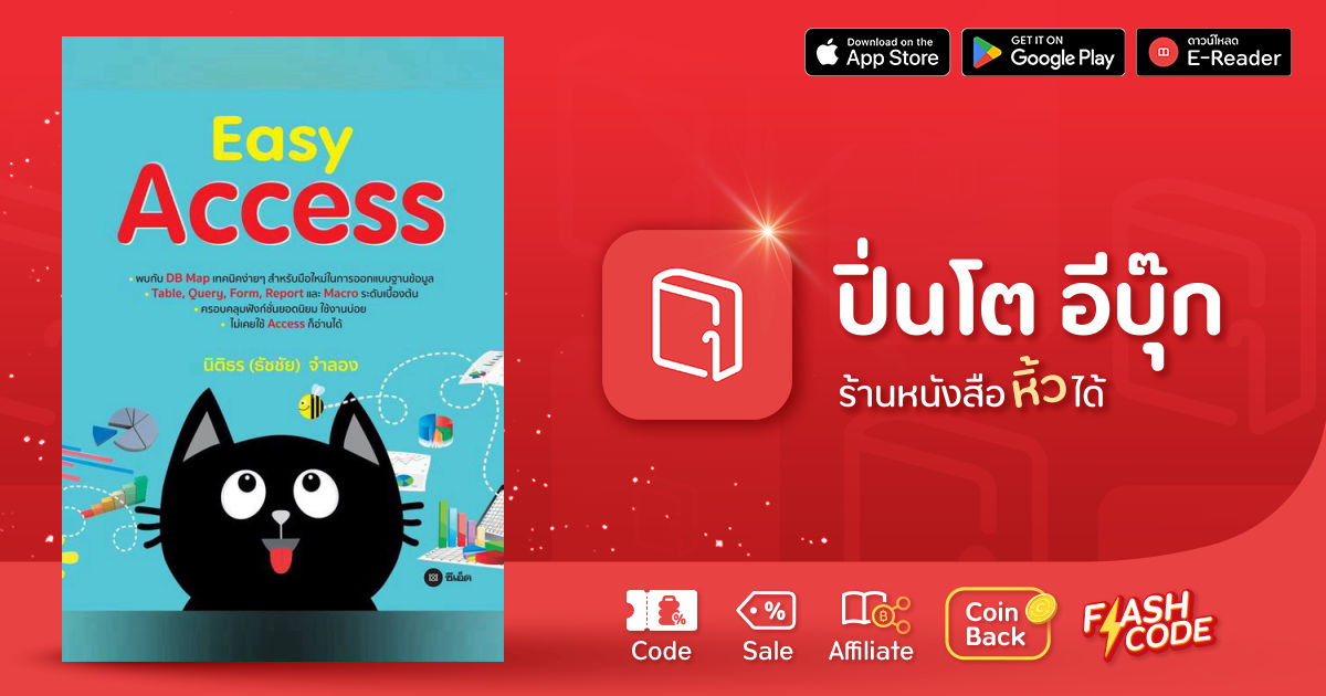 "Easy Access" เล่มนี้ เป็นคู่มือเล่มเล็กฉบับพกพา สำหรับผู้เริ่มต้นมือใหม่ ผู้ที่สนใจและอยากใช้โปรแกรม Access อธิบายด้วยภาษาง่าย ๆ เริ่มตั้งแต่เรื่องทั่วไปที่ควรรู้เกี่ยวกับ Access การออกแบบฐานข้อมูล DB MAP ด้วยเทคนิคง่าย ๆ ในการออกแบบฐานข้อมูล Table, Query, Form, Report และ Macro ระดับเบื้องต้น ครอบคลุมฟังก์ชั่นยอดนิยม ใช้งานบ่อย เหมาะสำหรับมือใหม่ใคร ๆ ก็อ่านได้!