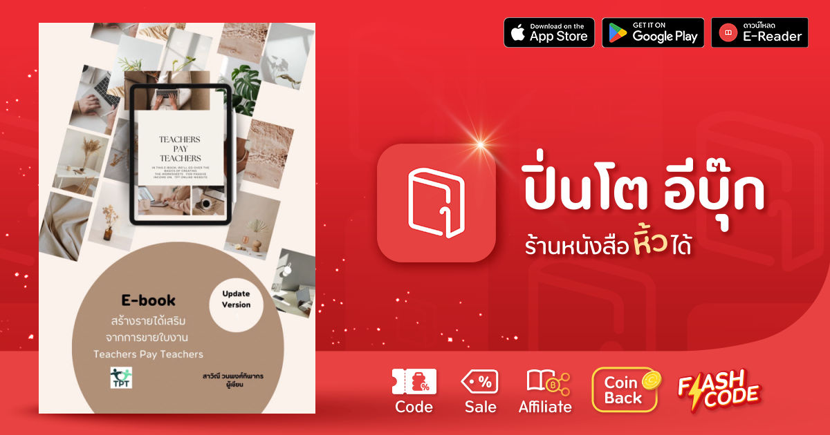 การทำใบงานและสื่อการเรียนการสอนประเภทต่างๆส่งขายที่เว็บไซต์ Teachers Pay Teachers ก็เป็นอีกหนึ่งช่องทางที่ทำได้ไม่ยาก และใช้การลงทุนครั้งแรกในการเปิดร้านไม่มากสามารถทำงานลงวางขายในร้านแล้วขายได้ตลอดหรือที่เรียกกันว่าการหารายได้แบบ Passive Income ซึ่งผู้เขียนต้องการที่จะแชร์ขั้นตอนการเปิดร้านและลงงานขาย สิ่งสำคัญที่ควรต้องรู้จากประสบการณ์จริงในการทำใบงานส่งขายที่TPT ให้กับผู้ที่สนใจเพื่อผู้เริ่มต้นขายจะได้ไม่จำเป็นต้องไปเริ่มจากศูนย์ใหม่หรือทดลองเอง แต่ใช้ความรู้และประสบการณ์จากE-Bookเล่มนี้ได้เลย