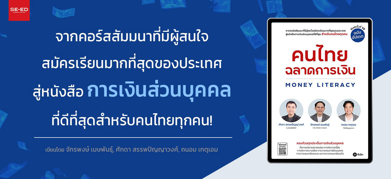 จากคอร์สสัมนาที่มีผู้สนใจสมัครเรียนมากที่สุดของประเทศ สู่หนังสือการเงินส่วนบุคคลที่ดีที่สุด สำหรับคนไทยทุกคน! "คนไทยฉลาดการเงิน : Money Literacy" คือหนังสือที่จะพาทุกคนไปทำความเข้าใจเรื่องการเงินอย่างรอบด้าน และสามารถช่วยให้ทุกคนวางแผนเส้นทางสู่การมีฐานะที่มั่นคง พาตัวเองสู่อิสรภาพการเงินได้ด้วยตัวเอง คุณจะเข้าใจถึงความรู้การเงินขั้นพื้นฐาน การบริหารสภาพคล่อง การจัดการความเสี่ยงทางการเงิน การวางแผนภาษี การวางแผนเกษียณรวย และการวางแผนเกษียณเร็ว ครบถ้วนทุกประเด็นด้านการเงินส่วนบุคคล