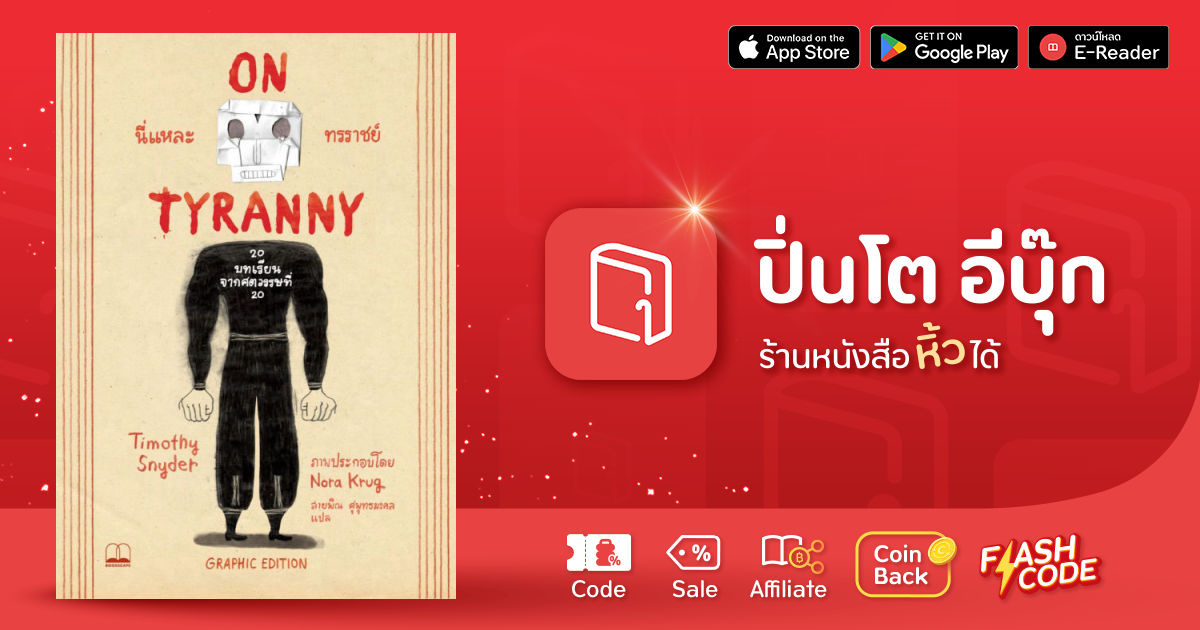 ทิโมธี สไนเดอร์ ศาสตราจารย์ประวัติศาสตร์จากมหาวิทยาลัยเยล ถ่ายทอด 20 บทเรียนจากศตวรรษที่ 20 เมื่อทรราชย์ก้าวขึ้นเป็นใหญ่ และประชาธิปไตยถูกคุกคามทั่วโลก จากนาซีเยอรมนีถึงยุโรปตะวันออก จากสตาลินถึงคอมมิวนิสต์ จากโดนัลด์ ทรัมป์ ถึงปูติน และจากโฆษณาชวนเชื่อถึงโลกออนไลน์ ร้อยเรียงผ่านภาพวาดอันเฉียบคมทรงพลังโดย นอรา ครุก นักวาดภาพประกอบมือรางวัล