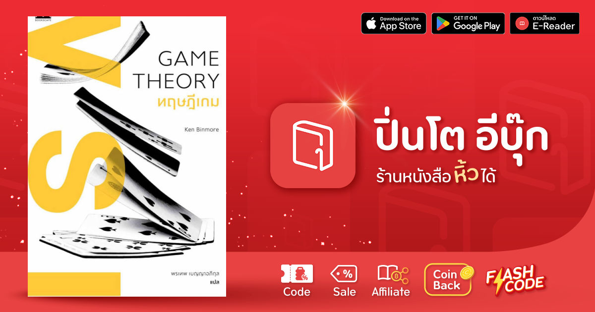 ทฤษฎีเกม: ความรู้ฉบับพกพา โดย เคน บินมอร์ ศาสตราจารย์เกียรติคุณสาขาเศรษฐศาสตร์แห่งยูนิเวอร์ซิตี คอลเลจ ลอนดอน จะพาเราท่องไปในโลกแห่งการทำความเข้าใจพฤติกรรมด้วยการศึกษากลยุทธ์ต่างๆ ของผู้เล่นในเกมอย่างเป็นระบบ มีเหตุมีผล และใช้ได้จริงในทางปฏิบัติ ซึ่งจะช่วยให้เราพยากรณ์พฤติกรรมของผู้คนและสิ่งที่เป็นไปในสังคมได้อย่างแม่นยำ