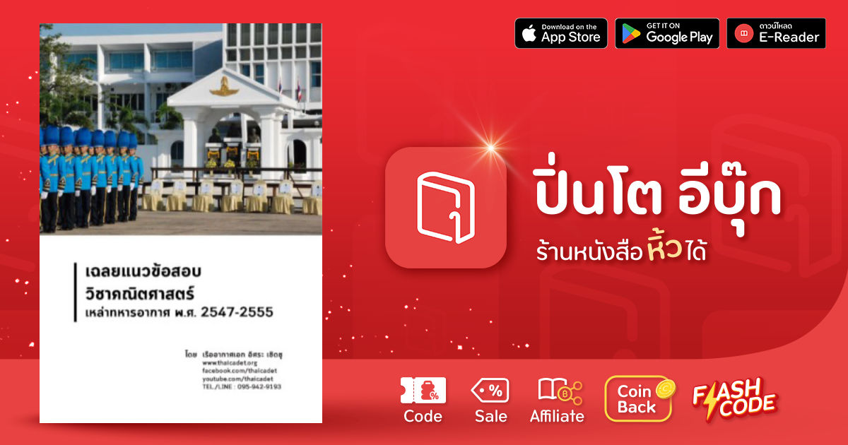 เฉลยแนวข้อสอบ วิชาคณิตศาสตร์ เหล่าทหารอากาศ พ.ศ. 2547-2555 (9 ปี) (หลักสูตรมัธยมศึกษาปีที่ 3) เฉลยโดย เรืออากาศเอก อิศระ เชิดชู จาก THAI CADET (กวดวิชาเข้าเตรียมทหาร ผลงานวิชาการที่ 1 เหล่าทหารบก พ.ศ. 2558) . คำแนะนำ - ผู้เฉลยได้แสดงวิธีการคิด และแนวทางในการแก้ปัญหาข้อสอบ ซึ่งผู้อ่านสามารถเรียนรู้ได้ด้วยตนเอง - เหมาะสำหรับนักเรียนเตรียมสอบเตรียมทหารที่ต้องการเก็บเนื้อหามัธยมศึกษาตอนต้น (ม.1-2-3) ให้ครบถ้วน - เหมาะสำหรับเป็นคัมภีร์ในการทำข้อสอบเตรียมทหารทุกเหล่า รวมทั้งเตรียมสอบช่างฝีมือทหาร และสอบเข้าเรียนต่อระดับชั้นมัธยมศึกษาปีที่ 4 . หากท่านผู้อ่านมีข้อสังเกต ข้อคิดเห็น หรือข้อเสนอแนะประการใดเกี่ยวกับหนังสือเล่มนี้ สามารถติดต่อผู้เขียนได้ที่ facebook.com/thaicadet ทุกความคิดเห็นของท่านมีคุณค่าต่อพวกเราเสมอ เพื่อที่เราจะได้พัฒนาและปรับปรุงงานเขียนให้ดียิ่งขึ้นไป