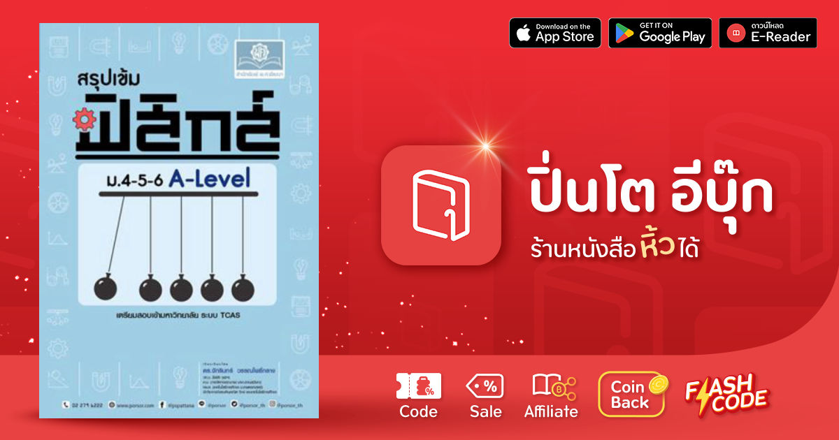 สรุปเนื้อหาวิชาฟิสิกส์ ม.4-6 แบบเข้มข้น ครอบคลุมทุกบทสอดแทรกเนื้อหาสำคัญ เทคนิคการคิดคำนวณนอกหลักสูตร แบบฝึกหัดท้ายบท จากข้อสอบที่มักออกสอบ พร้อมการวิเคราะห์ข้อสอบแนวข้อสอบ A-Level ในบทพร้อมเฉลยอธิบาย