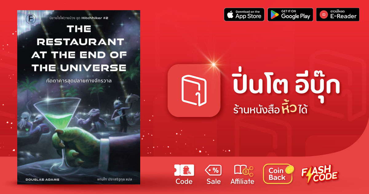 ภัตตาคารสุดปลายทางจักรวาล ที่ซึ่งกาลเวลาปั่นป่วนจนไวยากรณ์ป่วนปั่น ยินดีต้อนรับแขกทุกเผ่าพันธุ์ ขอเชิญทุกท่านสำเริงสำราญกับดนตรีหนวกหู จิบเครื่องดื่มสุดหรูระดับเมาหัวทิ่ม ชิมเมนคอร์สจากวัวที่อยากถูกกินใจจะขาด พร้อมรับชมมหรสพแห่งวาระสุดท้ายของจักรวาล