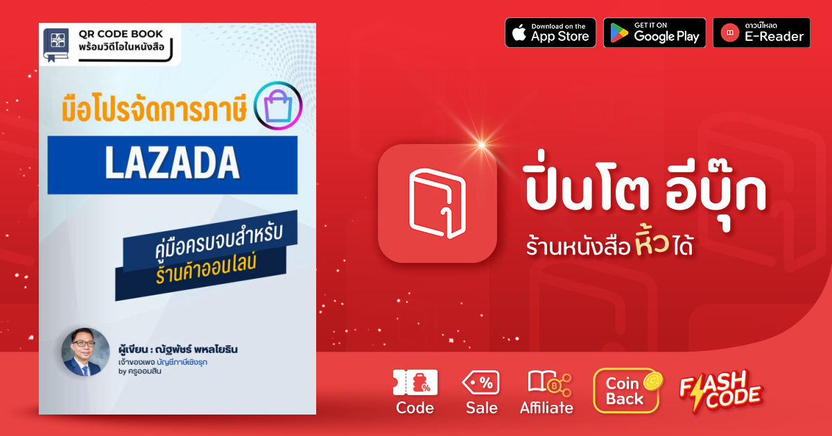 หนังสือเล่มนี้เป็นคู่มือสำหรับผู้ประกอบการร้านค้า Lazada ที่ต้องการจัดการภาษีอย่างมืออาชีพ ครบจบทุกขั้นตอนตั้งแต่การเตรียมเอกสารที่จำเป็น การตั้งค่าระบบภาษีใน Lazada ไปจนถึงการบันทึกบัญชี การออกใบกำกับภาษีที่ถูกต้อง และการวางแผนภาษีเพื่อช่วยลดภาระทางภาษีได้อย่างมีประสิทธิภาพ