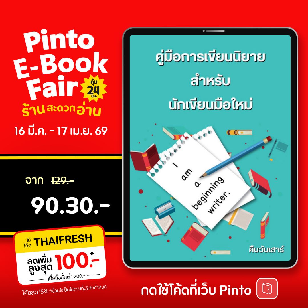 เพราะการเขียนนิยายให้จบสักเรื่องไม่ใช่เรื่องง่าย หลายคนประสบพบเจอกับปัญหาหลากหลายรูปแบบในระหว่างที่เริ่มเขียนไม่ว่าจะเป็นการเขียนไม่ออก ไม่รู้จะเขียนอะไรต่อ หรือแม้กระทั่งปัญหาสภาพแวดล้อมในการเขียนที่ส่งผลต่อการเขียนของเรา จะดีกว่าไหมถ้าคุณรู้วิธีการเขียนก่อนลงมือทำจริง เราหวังว่า E-book เล่มนี้จะสามารถช่วยให้คุณแก้ปัญหาในการเขียนได้ตรงจุดและพัฒนาผลงานชิ้นใหม่ๆ ออกสู่ตลาดหนังสือต่อไปได้