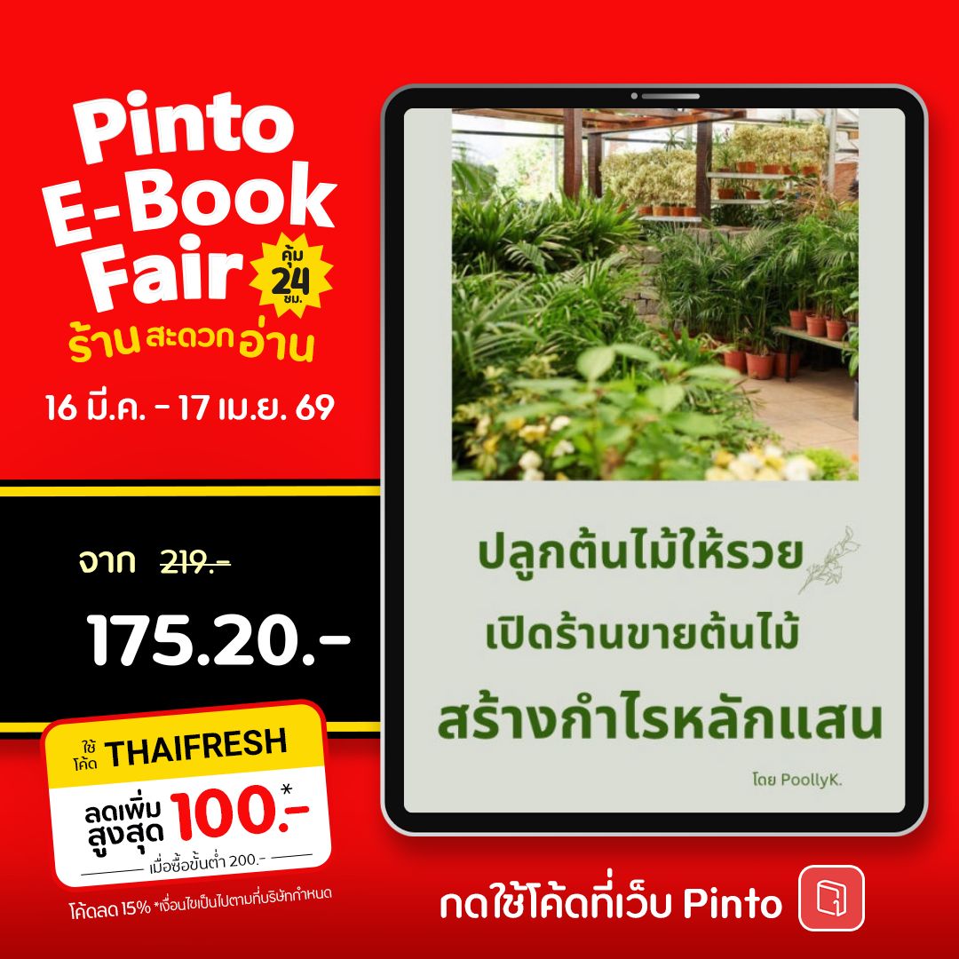 **อยากเปิดร้านต้นไม้ แต่ไม่รู้จะเริ่มยังไง?** หนังสือ ปลูกต้นไม้ให้รวยเปิดร้านต้นไม้สร้างกำไรหลักแสน จะพาคุณก้าวสู่โลกของธุรกิจต้นไม้ หนังสือเล่มนี้คือคู่มือที่คุณต้องมี