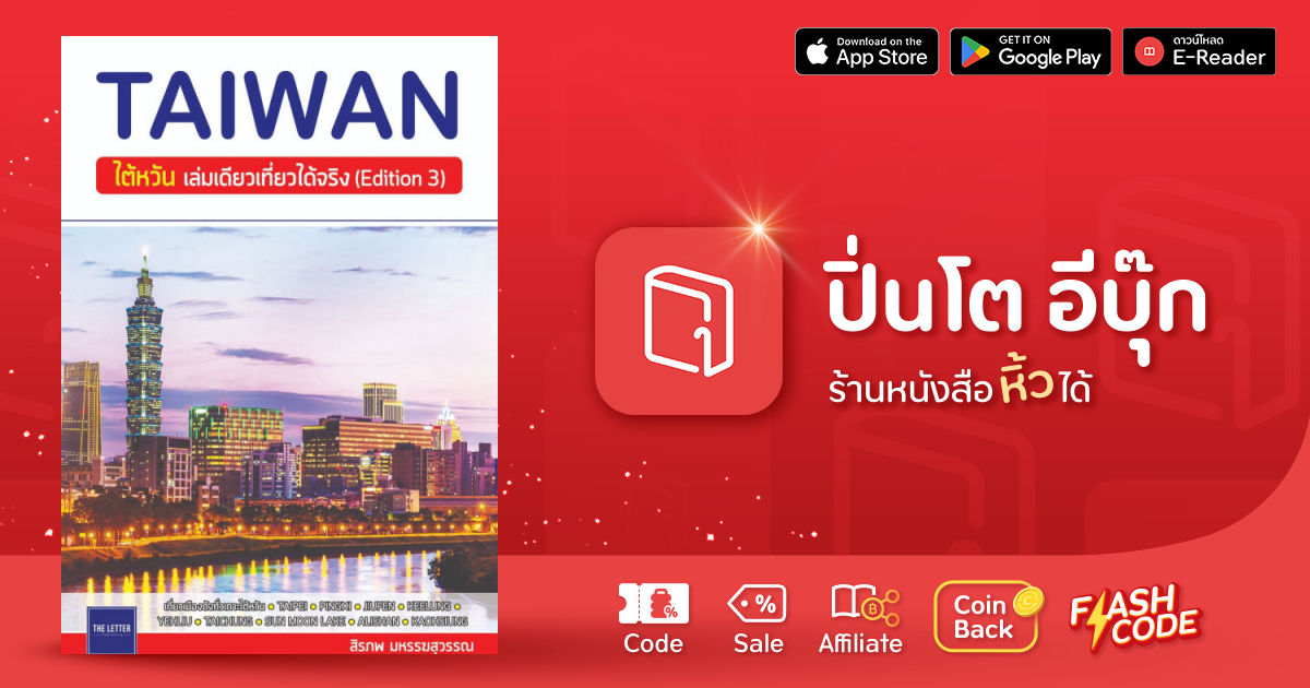 หนังสือ "TAIWAN : ไต้หวัน เล่มเดียวเที่ยวได้จริง (Edition 3)" พาคุณไปเยี่ยมเยือนเมืองสำคัญบนเส้นทางยอดฮิตของเกาะไต้หวัน เต็มอิ่มครบอรรถรส อาทิ Taipei, Pingxi, Jiufen, Keelung, Yehliu, Taichung, Sun Moon Lake, Alishan, Kaohsiung