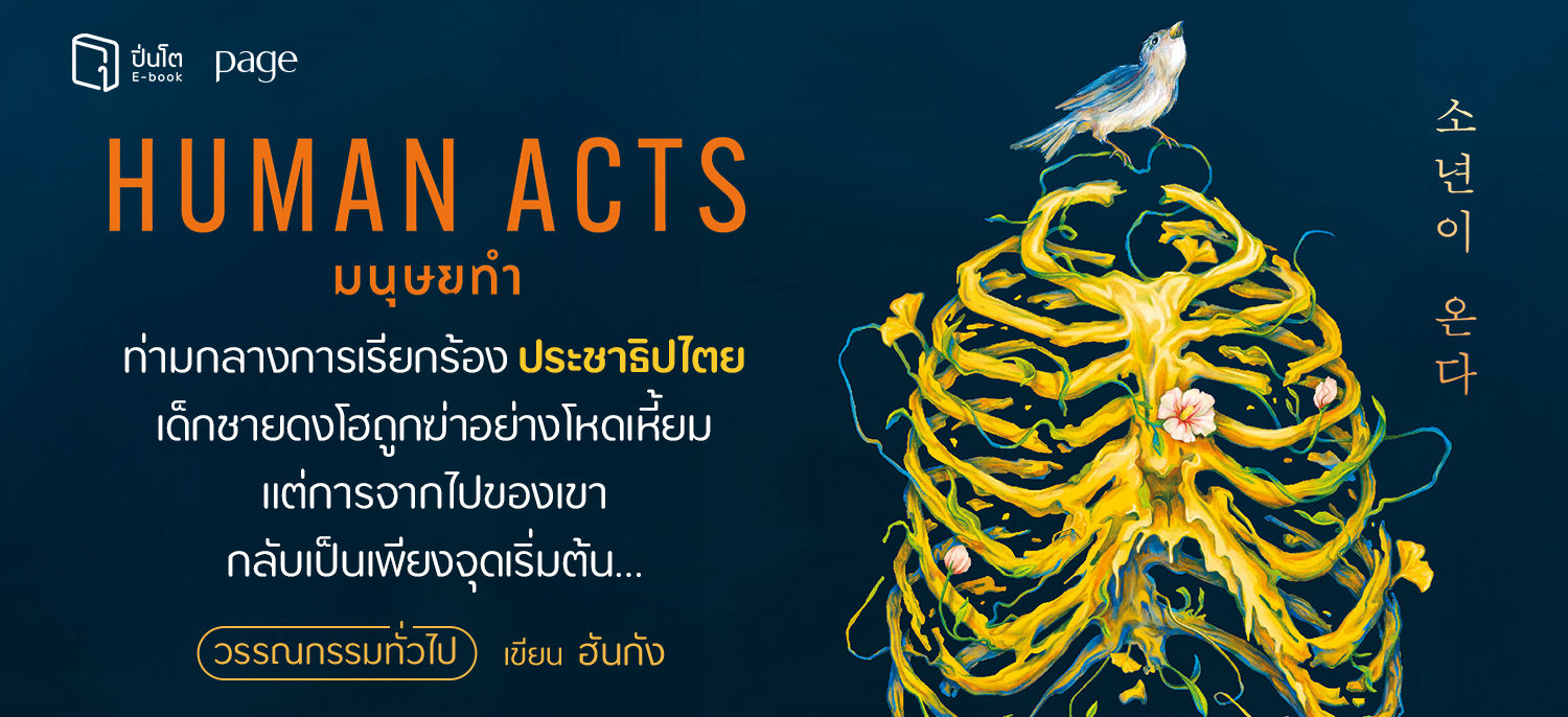 Human Acts คือนิยายที่เคยคว้ารางวัลและเป็นที่ถกเถียงอย่างกว้างขวาง ถ่ายทอดภาพประวัติศาสตร์ผ่านมุมมองอันละเอียดลึกซึ้ง สะท้อนถึงเหตุการณ์ที่ยังส่งแรงสั่นสะเทือนมาถึงปัจจุบัน ถ่ายทอดทั้งความจริงอันโหดร้ายของการกดขี่และบทกวีอันทรงพลังของความเป็นมนุษย์