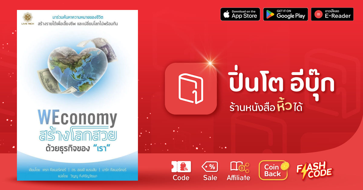 ทั้งหมดที่กล่าวมานี้อยู่ใน หนังสือ “WEconomy สร้างโลกสวยด้วยธุรกิจ ของเรา” ซึ่งได้ถ่ายทอดแนวคิดและการลงมือปฏิบัติจริงของบรรดาผู้ประกอบการ ร่วมกับคนในองค์กร จนเกิดเป็นผลลัพธ์ที่น่าประทับใจ ทุกขั้นตอนในกระบวนการทางธุรกิจถูกออกแบบและวางแผนมาเพื่อให้มีส่วนส่งเสริมและผลักดันโลกของเราให้น่าอยู่ยิ่งขึ้น และคงไว้ซึ่งความสำเร็จทางธุรกิจอันเป็นชัยชนะที่ทุกองค์กรปรารถนา