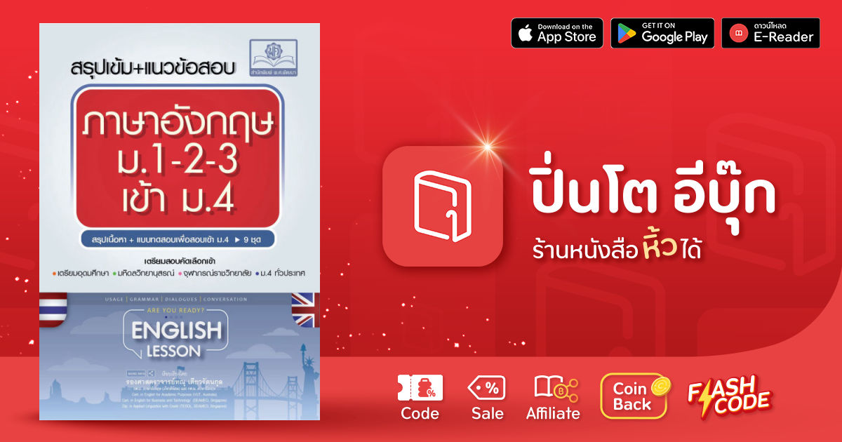 สรุปเนื้อหาภาษาอังกฤษ ม.1-2-3 โดยวิเคราะห์จากข้อสอบโรงเรียนมีชื่อเสียง เก็งข้อสอบ ตามข้อสอบจริง พร้อมเฉลยอธิบาย จำนวน 9 ชุด เพื่อใช้ทบทวนบทเรียน และเตรียมตัวสอบเข้าโรงเรียนเตรียมอุดมศึกษา และโรงเรียนชั้นนำอื่นๆ