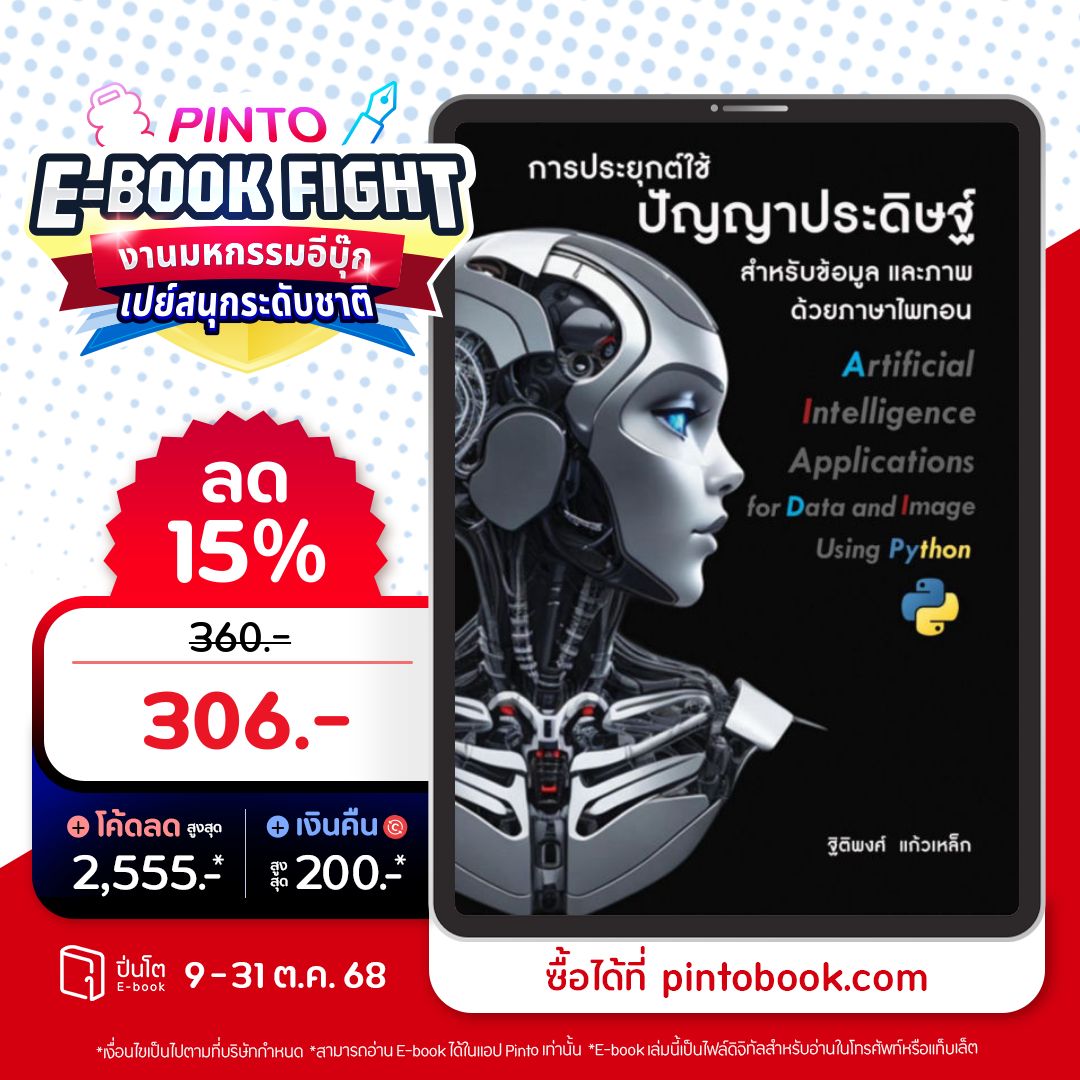 หนังสือเล่มนี้ ได้รวบรวมความรู้จากประสบการณ์ในการสอน และการทำงานวิจัยของผู้แต่งหนังสือ โดยมีเนื้อหาประกอบไปด้วย ปัญญาประดิษฐ์เบื้องต้น การใช้ภาษาไพทอนสำหรับปัญญาประดิษฐ์ การเรียนรู้แบบมีผู้สอน การเรียนรู้แบบไม่มีผู้สอน และการเรียนรู้แบบเสริมกำลังการเรียนรู้เชิงลึก การใช้ปัญญาประดิษฐ์กับข้อมูล และการใช้ปัญญาประดิษฐ์กับภาพ เหมาะสำหรับผู้ที่ศึกษาเกี่ยวกับปัญญาประดิษฐ์ ตั้งแต่ระดับเริ่มต้น ขึ้นไป ซึ่งจะอธิบายให้เข้าใจความหมาย หลักการพื้นฐานของปัญญาประดิษฐ์ และการทำงานของปัญญาประดิษฐ์แต่ละประเภท พร้อมทั้งการใช้ภาษาคอมพิวเตอร์ (ภาษาไพทอน) ในการใช้งานกับปัญญาประดิษฐ์แต่ละประเภท เพื่อให้ผู้อ่านสามารถนำไปใช้งานในระดับเริ่มต้น และสามารถนำไปประยุกต์ใช้งานในระดับที่ซับซ้อนมากขึ้นได้ โดยเนื้อหาเน้นการนำไปใช้งาน กับข้อมูลและภาพ ตั้งแต่กระบวนการการเตรียมข้อมูล และภาพ การสร้างโมเดลปัญญาประดิษฐ์ การฝึก ตรวจสอบ และทดสอบ รวมทั้งการประเมินประสิทธิภาพของโมเดลปัญญาประดิษฐ์ที่สร้างขึ้น