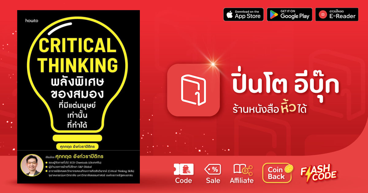 Critical Thinking พลังพิเศษของสมองที่มีแต่มนุษย์เท่านั้นที่ทำได้ เล่มนี้ จึงถือกำเนิดขึ้น เพื่อช่วยให้คุณไม่เพียงแค่ตามทันโลก แต่ยังสามารถ “คิดให้ลํ้ากว่า” และ “ตัดสินใจได้อย่างเฉียบคม” ไม่ว่าคุณจะเป็นใคร ทำงานอะไร หรืออยู่ในวัยใดก็ตาม คุณทศ - ศุภกฤต อังก์วราปิติกร ผู้เขียน เป็นผู้เชี่ยวชาญ อาจารย์ และที่ปรึกษาองค์กรชั้นนำในด้านนี้ จึงได้นำเสนอ