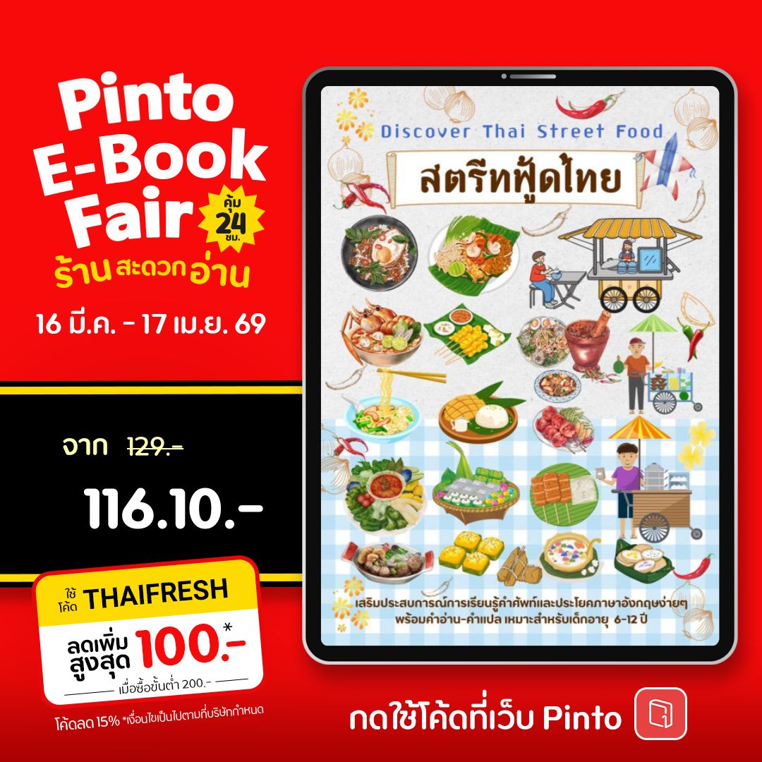 สตรีทฟู้ดไทยเป็นส่วนสำคัญของวิถีชีวิตประจำวันในประเทศไทย ทั้งเด็กและผู้ใหญ่ต่างชอบแวะร้านข้างทางเพื่อกินอาหารอร่อย ของหวานสีสวย และพบแม่ค้าพ่อค้าที่เป็นกันเอง หนังสือเล่มนี้จะพาเด็กๆ ไปสนุกกับโลกของอาหารสตรีทฟู้ดไทย ผ่านประโยคง่ายๆ คำศัพท์ภาษาอังกฤษ และคำอ่านที่เข้าใจได้ไม่ยาก มารู้จักอาหารสุดอร่อยที่ทำให้ประเทศไทยพิเศษไปด้วยกันนะคะ!