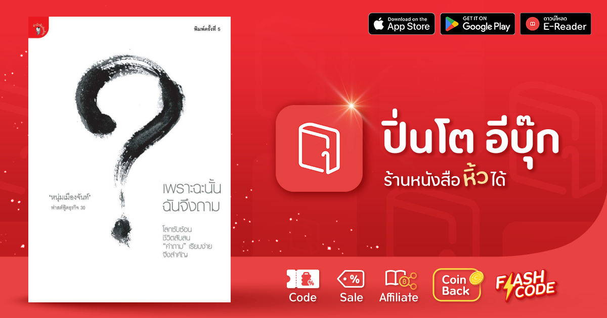 ตั้งคำถามต่อทุกสิ่งอย่าง ต่อชีวิต ต่อโอกาส ต่อพรุ่งนี้ ต่ออนาคต และ ที่สำคัญ ตั้งคำถามต่อความรู้ของตัวเอง ‘เพราะฉะนั้น ฉันจึงถาม’ ฟาสต์ฟู้ดธุรกิจลำดับที่ 30 ตั้งคำถามต่อทุกสิ่งอย่าง ต่อชีวิต ต่อโอกาส ต่อพรุ่งนี้ ต่ออนาคต และที่สำคัญ ตั้งคำถามต่อความรู้ของตัวเอง ‘หนุ่มเมืองจันท์’ เปลี่ยนคำคมเป็นคำถาม เขาว่าความไม่รู้สำคัญกว่าความรู้ คนเก่งคือคนที่รู้ว่าตัวเองไม่รู้อะไร รู้ว่าจะหาความรู้เพิ่มได้กับใคร คนเก่งคือคนที่รู้ว่าตัวเองพลาดตรงไหนและจะแก้ไขได้อย่างไรขอเชิญตั้งคำถามและหาคำตอบของตัวเองไปพร้อมๆ กับแขกรับเชิญในเล่ม