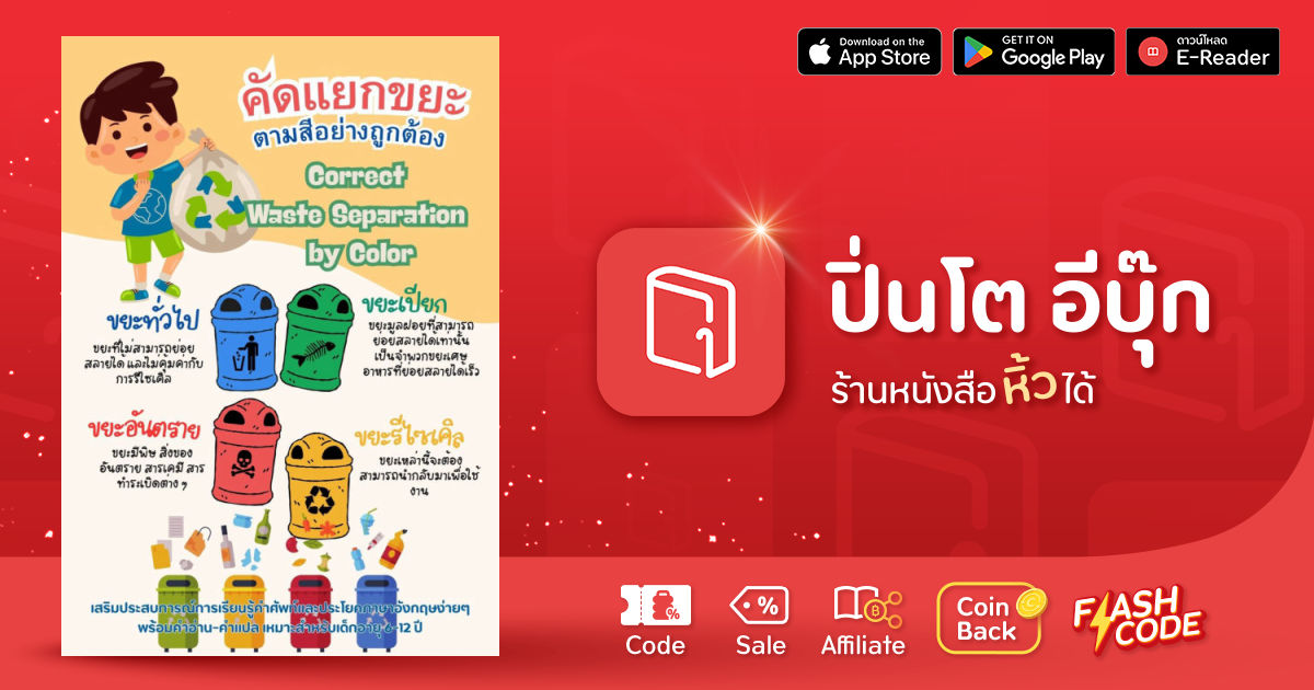 หนังสือเล่มนี้จะพาเด็ก ๆ เรียนรู้การคัดแยกขยะตามสีอย่างถูกต้อง ผ่านเรื่องราวและประโยคสั้น ๆ ที่เข้าใจง่าย การคัดแยกขยะเป็นเรื่องเล็ก ๆ ที่เด็กทุกคนทำได้ แต่ช่วยโลกของเราได้มาก เมื่อเราแยกขยะถูกสี โลกก็สะอาดและน่าอยู่ขึ้น