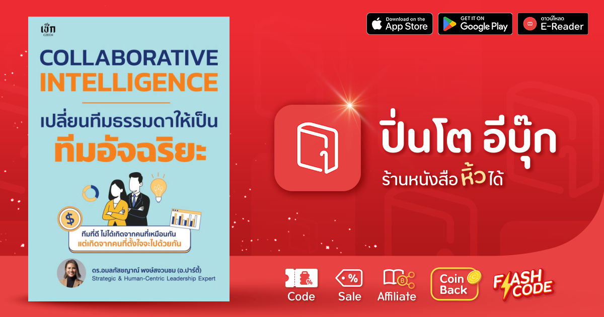 คุณเคยสงสัยไหมว่า “ทีมของฉันรวมคนเก่งเอาไว้มาก แต่ผลงานกลับไม่เป็นไปตามเป้าหมาย” คําตอบง่ายมาก เพราะ คนเก่งจํานวนมากมักจะมี “ตัวตน” หรือ Ego ที่สูงกว่าคนธรรมดา สูงขนาดที่ไม่ยอมรับฟังความคิดเห็นของคนอื่นเพราะเชื่อมั่นในความรู้และสติปัญญาของตนเองดังนั้นสิ่งที่ตามมาของทีมที่มีแต่คนเก่งคือ “ความขัดแย้งและ “ศักดิ์ศรี” ที่ค้ำคอ ทําให้ต่างคนอยู่ในสภาพถอยไม่ได้ ยอม ไม่ได้ และปล่อยวางไม่ได้ เมื่อไม่มีใครยอมใครก็ย่อมไม่มีใครฟังใคร ต่างคนต่างก็ยึดมั่นในความเก่ง อยากจะเอาชนะโดยไม่สนใจสิ่ง แวดล้อมหรือสถานการณ์ แล้วแบบนี้ทีมจะบรรลุเป้าหมายได้อย่างไรนี่คือความจริงของทีมที่เต็มไปด้วยคนเก่ง ในขณะที่ทีมธรรมดาที่ผู้นําก็ไม่ได้เก่งกาจ ส่วนสมาชิกก็ไม่ได้โดดเด่นแต่ทุกคน สามารถร่วมใจกัน รวมพลังประสานสามัคคีจนกลายเป็นทีมที่ แข็งแกร่ง จนสามารถพิชิตอุปสรรค หรือบรรลุเป้าหมายได้เร็วกว่า ทีมที่เต็มไปด้วยคนเก่ง “Collaborative Intelligence เปลี่ยนทีมธรรมดา ให้เป็น ทีมอัจฉริยะ” ผลงานของ ดร.อมลภัสชญาณ์ พงษ์สงวนชม (อ.ปาร์ตี้) คือหนังสือที่จะทําให้ทีมธรรมดาที่ผู้นําก็ไม่