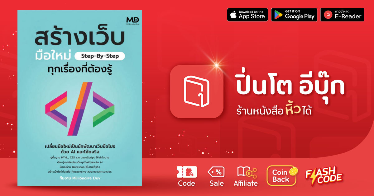 หนังสือ “สร้างเว็บ มือใหม่ Step-By-Step ทุกเรื่องที่ต้องรู้” เล่มนี้ คือ คู่มือที่จะพาคุณเริ่มต้นจากศูนย์ ค่อย ๆ เรียนรู้ไปทีละขั้น จนสามารถสร้างเว็บไซต์ที่ใช้งานได้จริงด้วยตัวเอง
